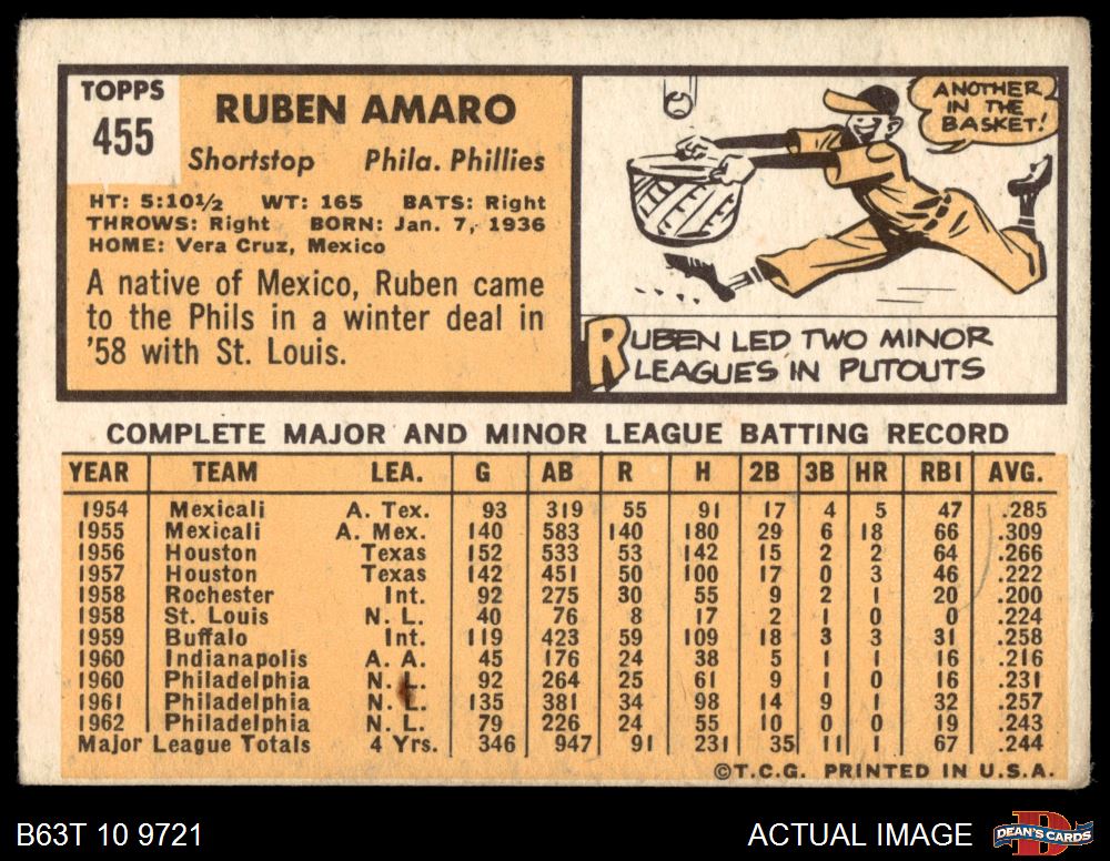 1963 Topps #455 Ruben Amaro 3 - VG