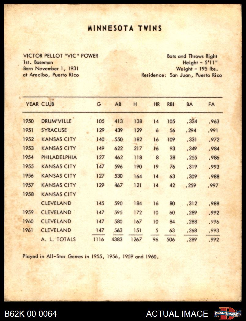 1962 Kahn's MIN Vic Power 4 - VG/EX
