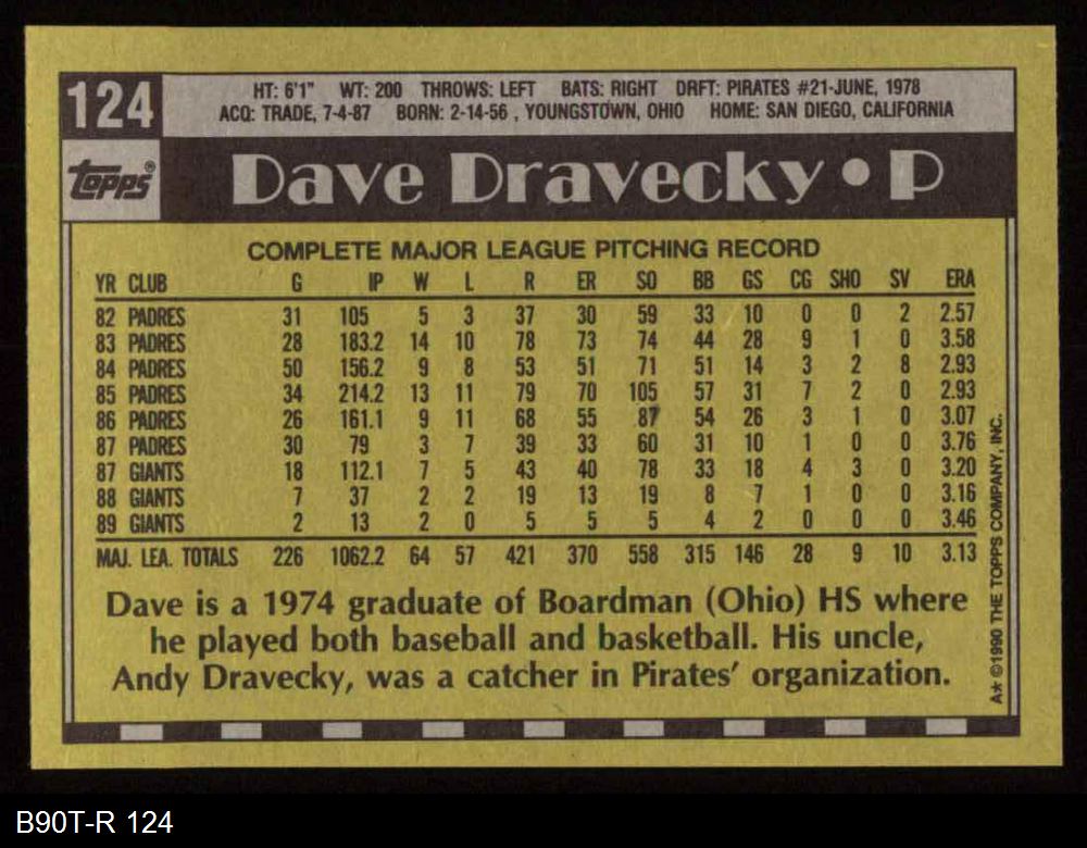 1990 Topps #124 Dave Dravecky 8 - NM/MT