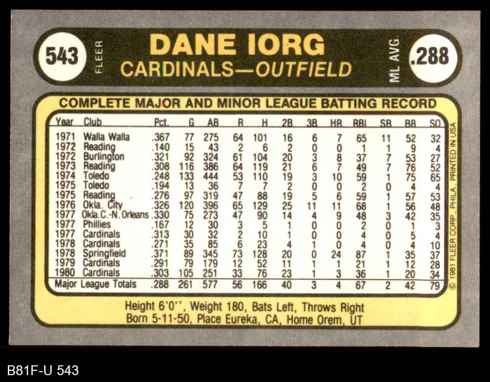 1981 Fleer #543 Dane Iorg 8 - NM/MT