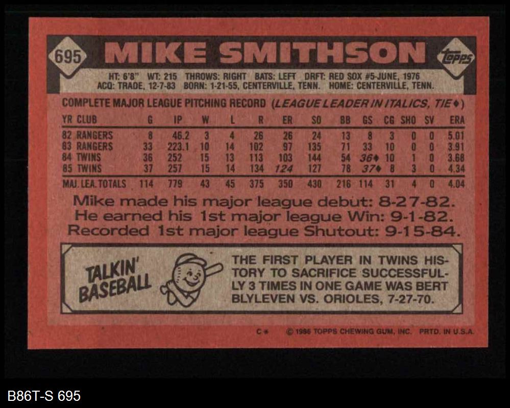 1986 Topps #695 Mike Smithson