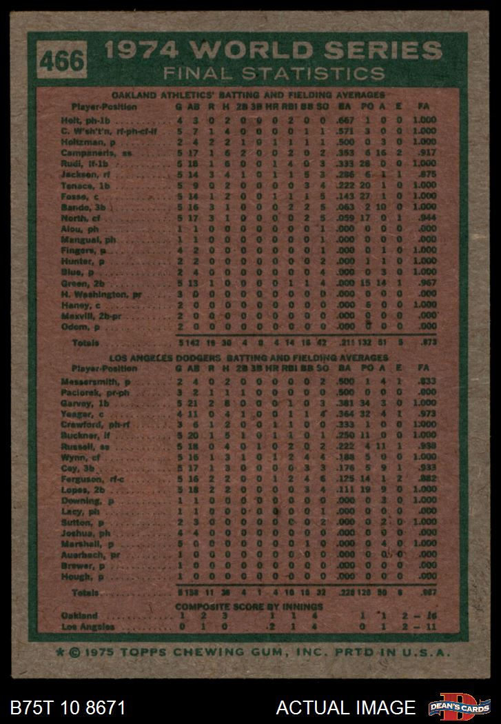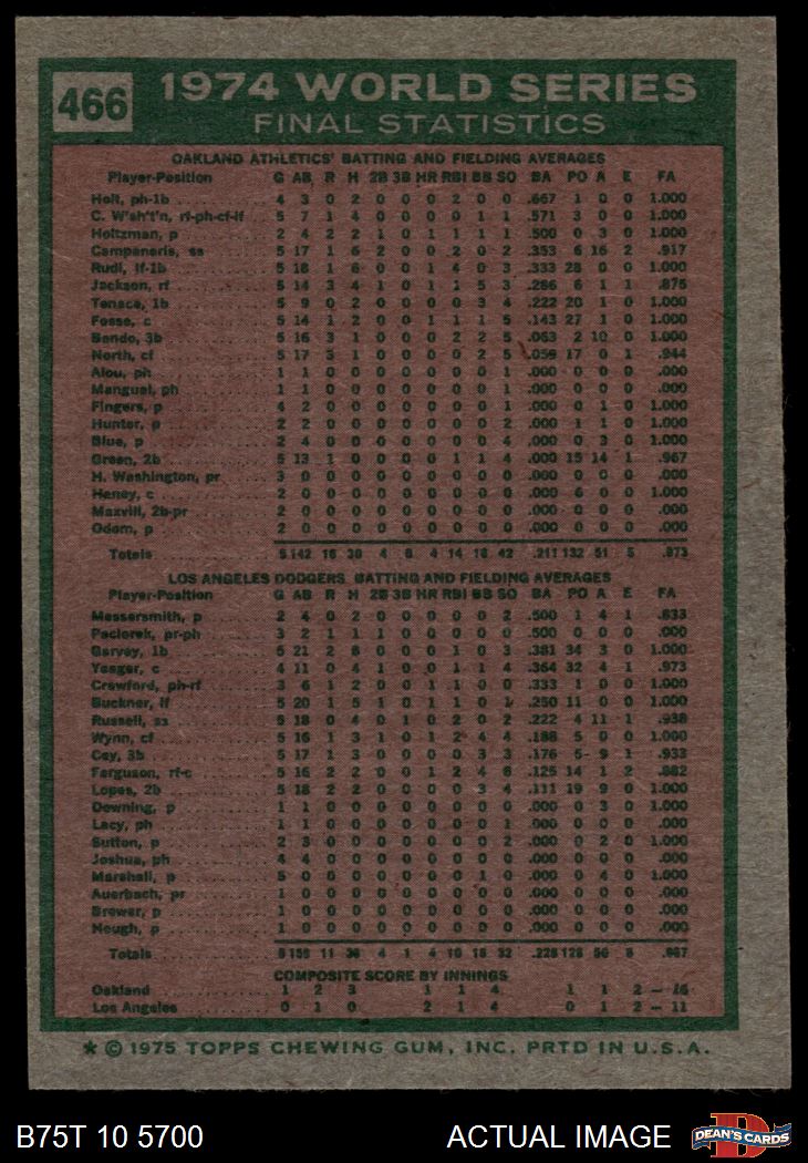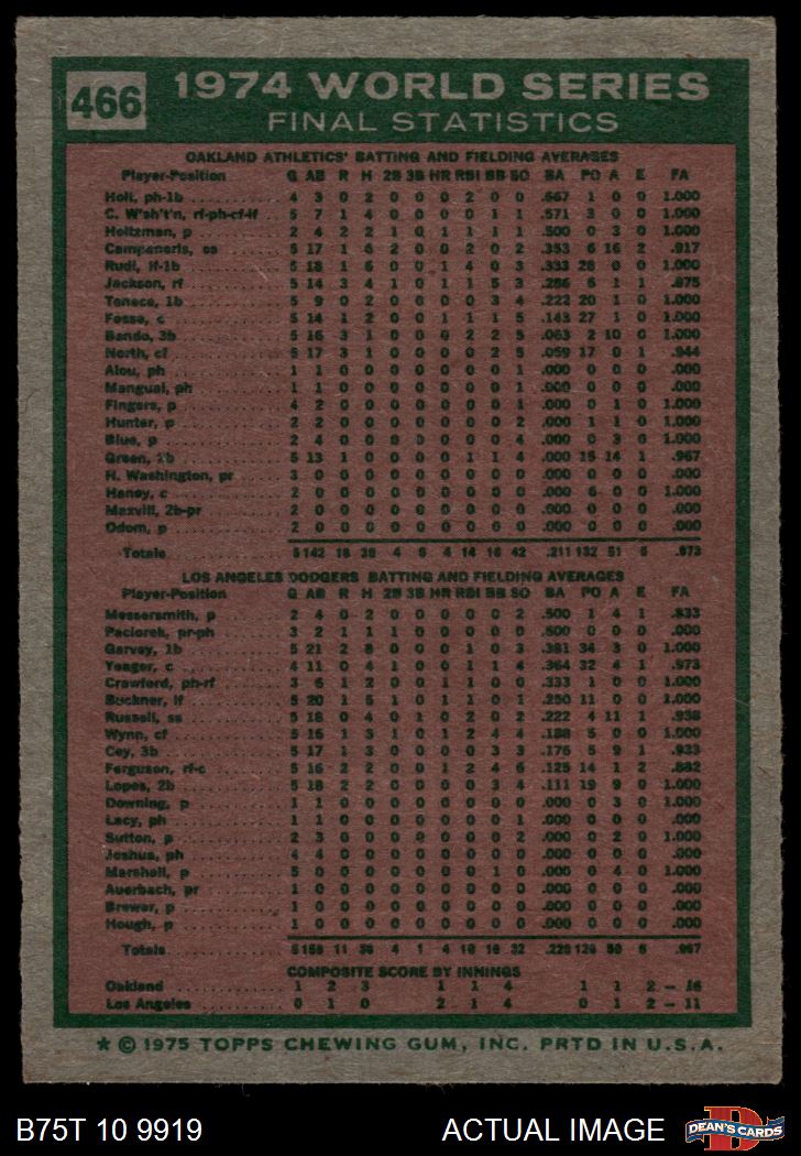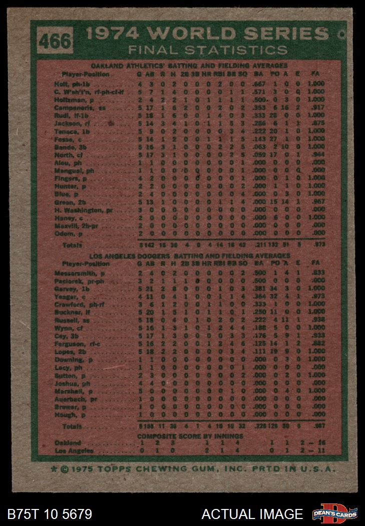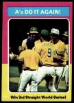 1975 Topps #466 1974 World Series - Summary - A's Do it Again