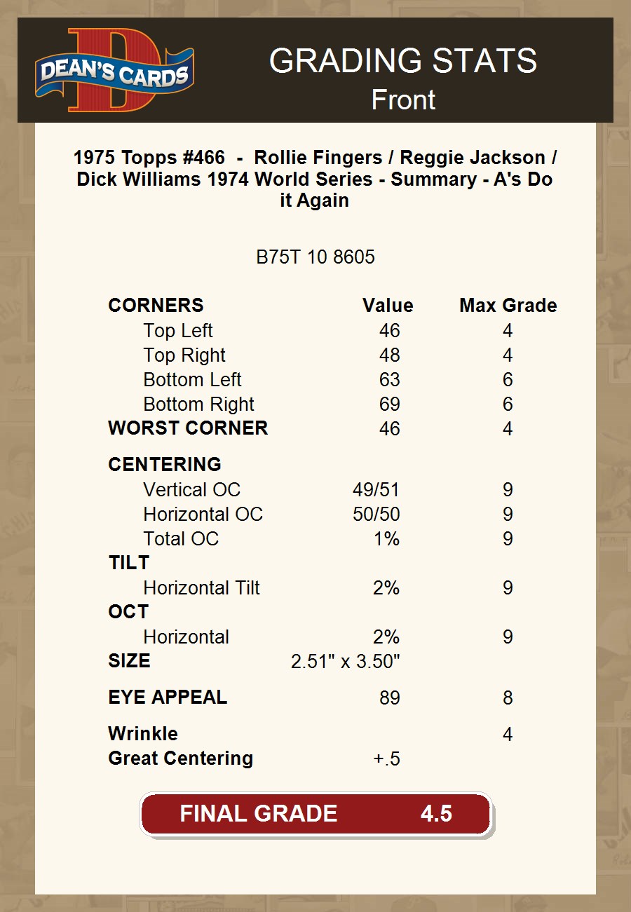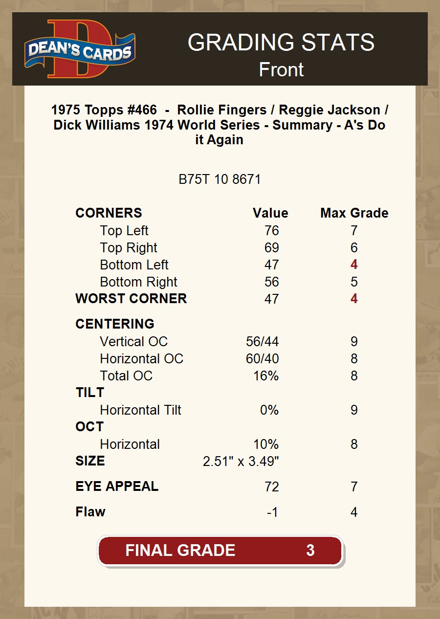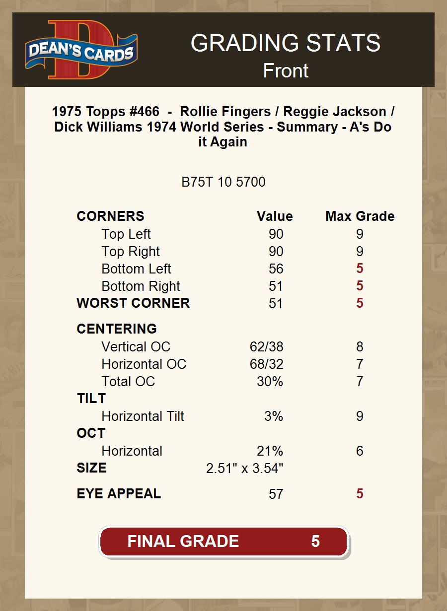 1975 Topps #466 1974 World Series - Summary - A's Do it Again