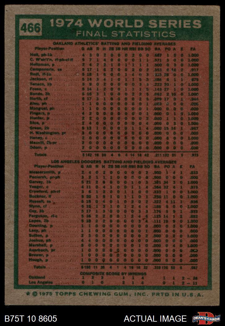 1975 Topps Baseball Cards (12,434 available)1975 Topps Athletics / Dodgers (215 available)