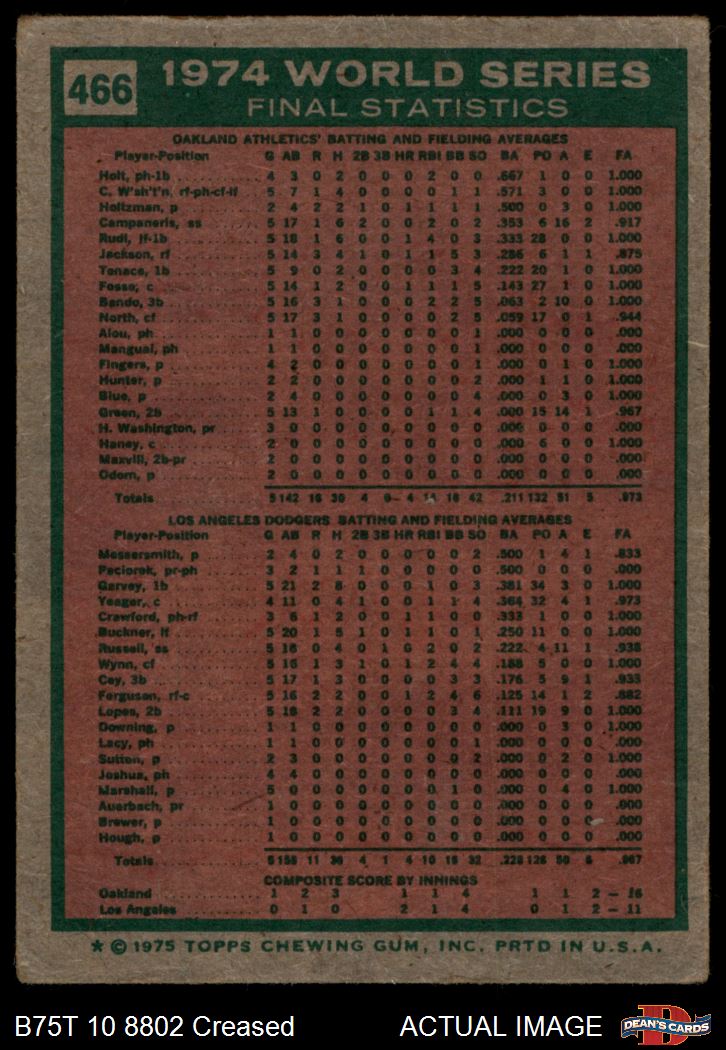 1975 Topps #466 - Rollie Fingers / Reggie Jackson / Dick Williams 1974 World Series - Summary - A's Do it Again 2.5 - GD+
