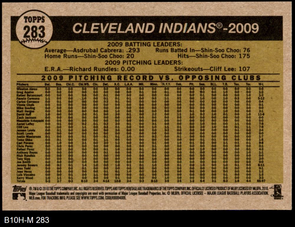 2010 Topps Heritage #283 Indians Team 8 - NM/MT