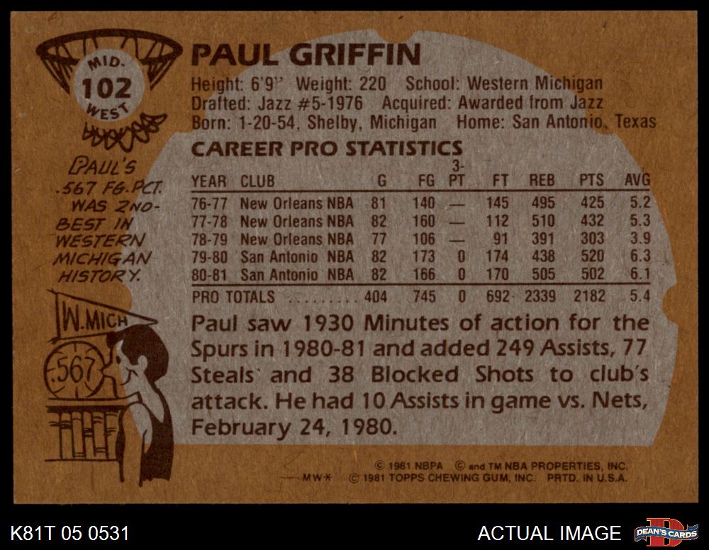 1981 Topps #102 MW Paul Griffin 7 - NM