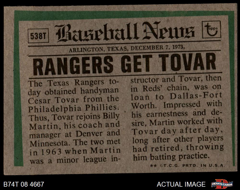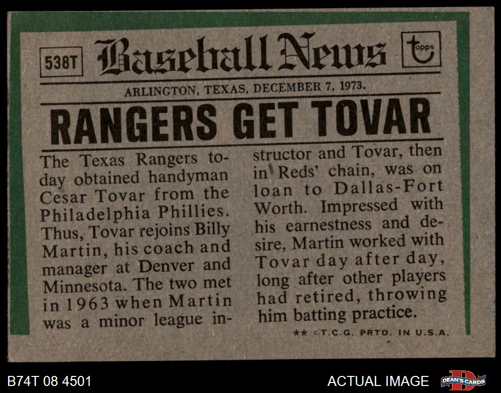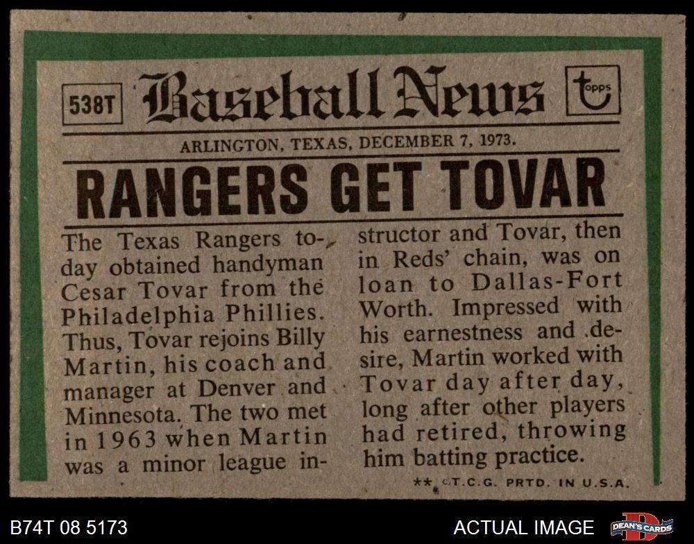 1974 Topps #538 T - Cesar Tovar Traded 5 - EX