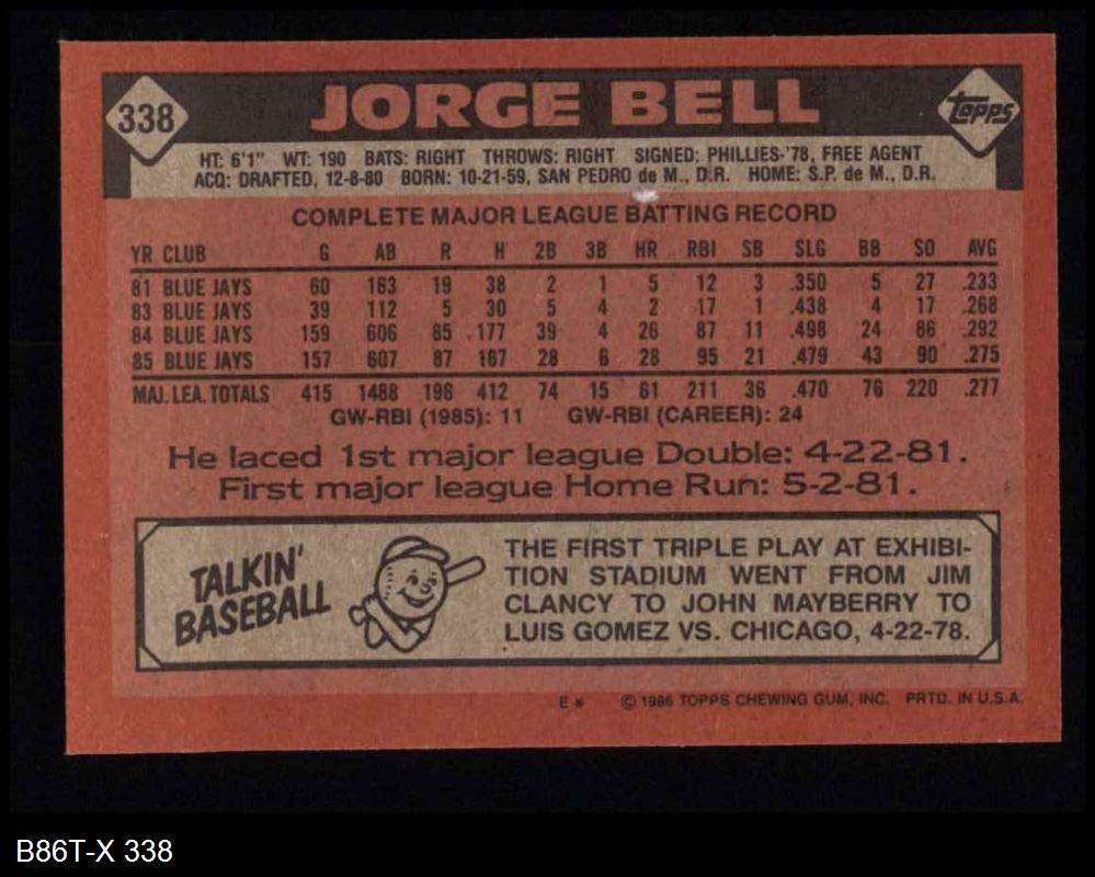 1986 Topps #338 George Bell