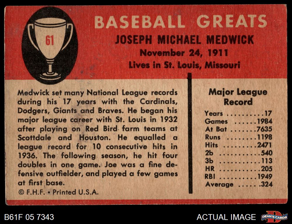 1961 Fleer #61 Ducky Medwick 3.5 - VG+