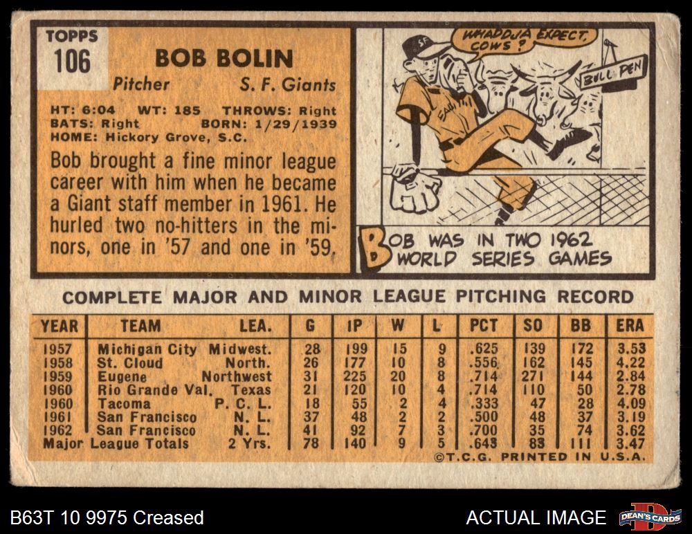 1963 Topps #106 Bobby Bolin 2 - GOOD