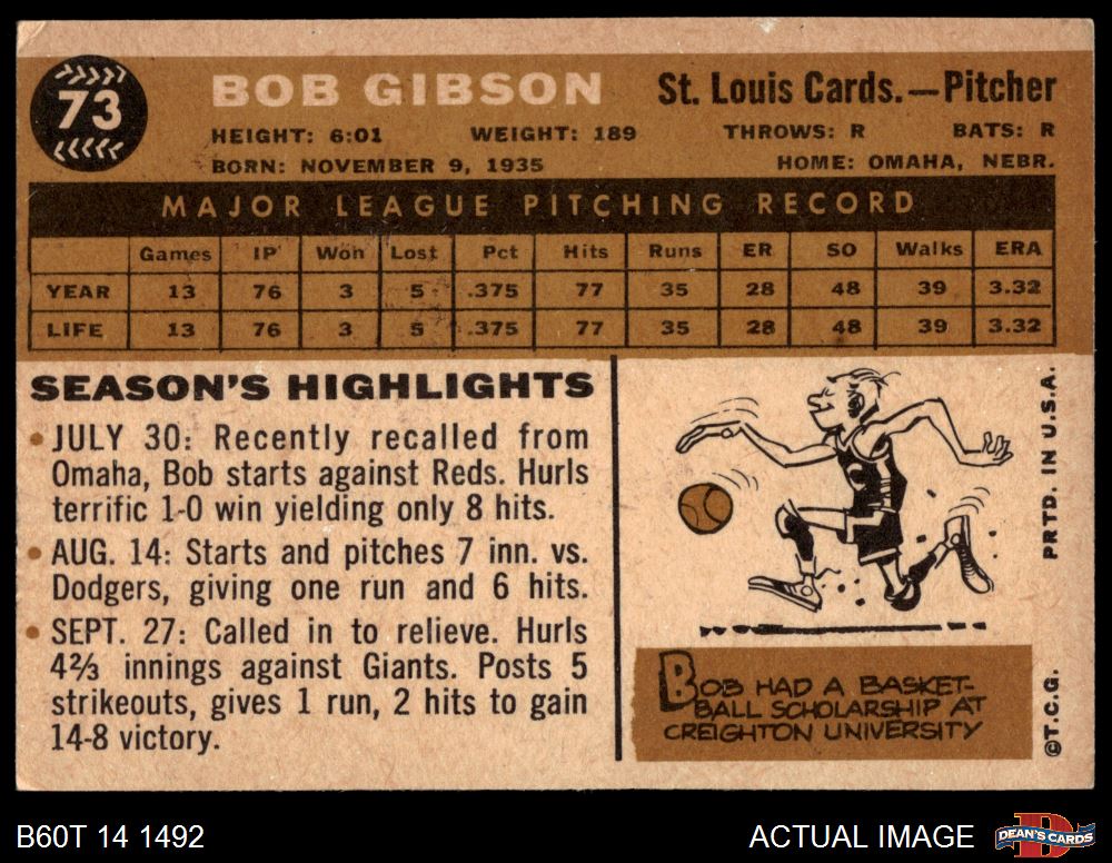 1960 Topps #73 Bob Gibson 4 - VG/EX