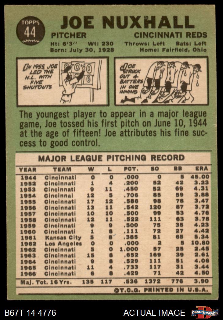 1967 Topps #44 Joe Nuxhall 4 - VG/EX