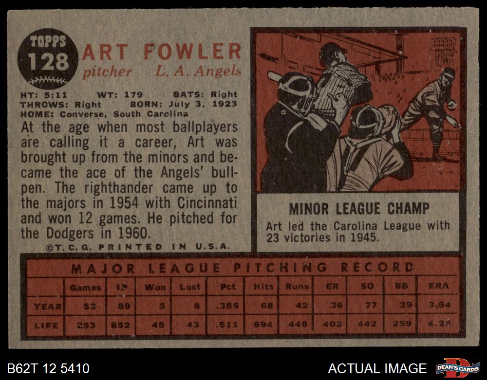 1962 Topps #128 NRM Art Fowler