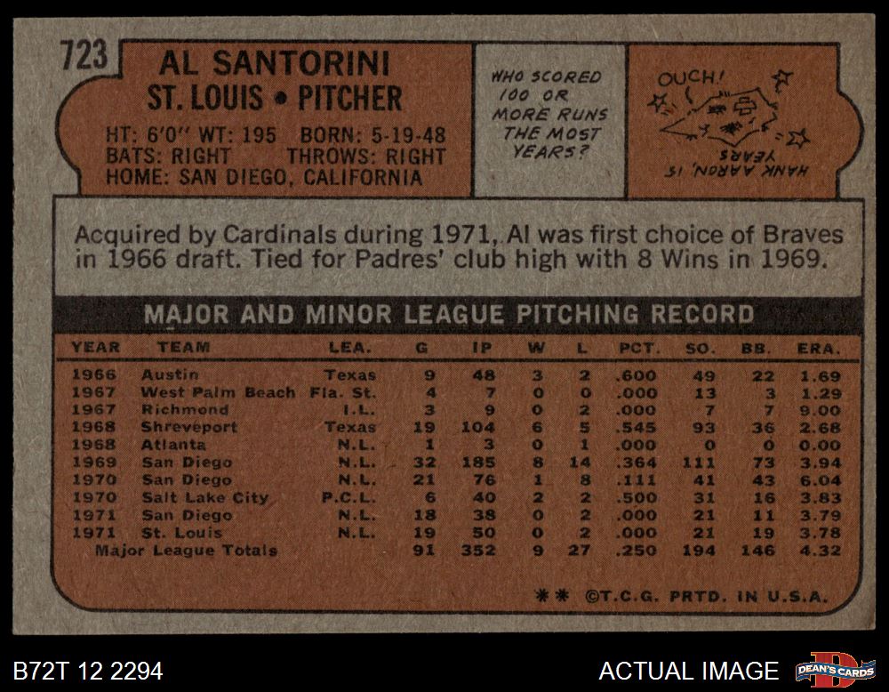 1972 Topps #723 Al Santorini 4 - VG/EX