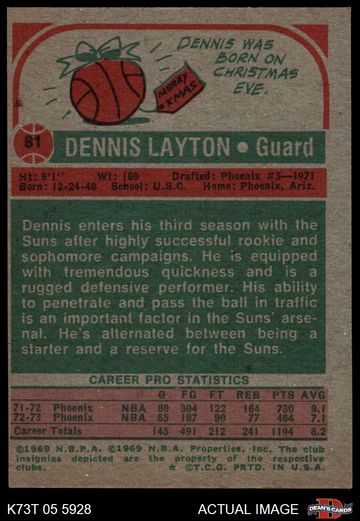 1973 Topps #81 Dennis Layton 5 - EX