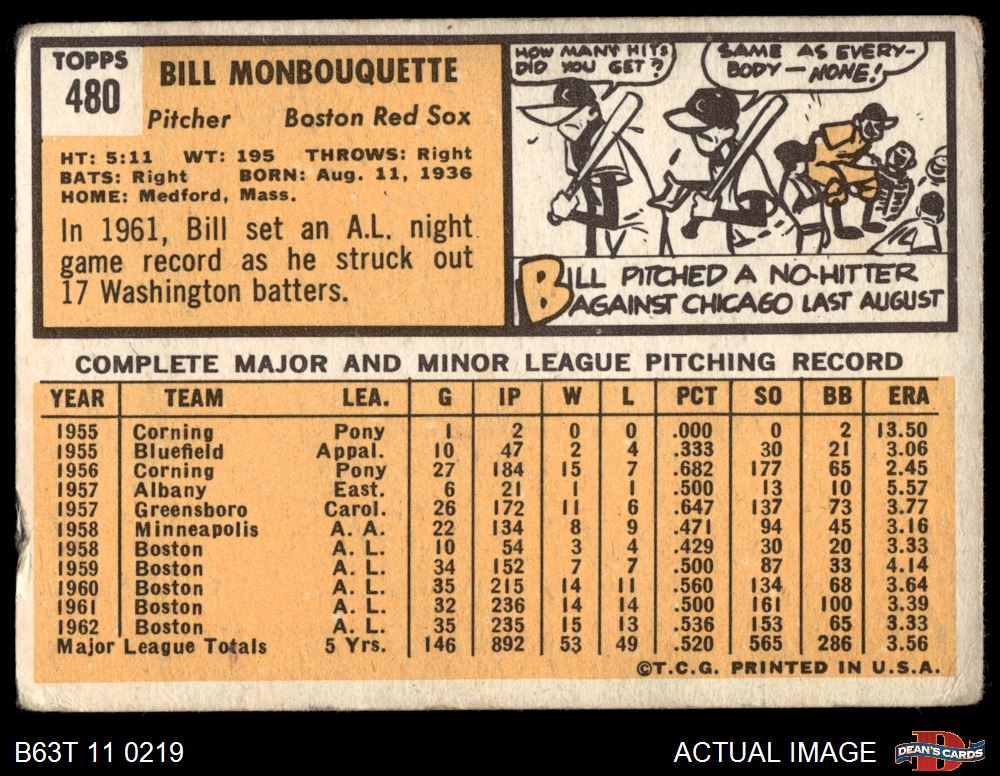 1963 Topps #480 Bill Monbouquette