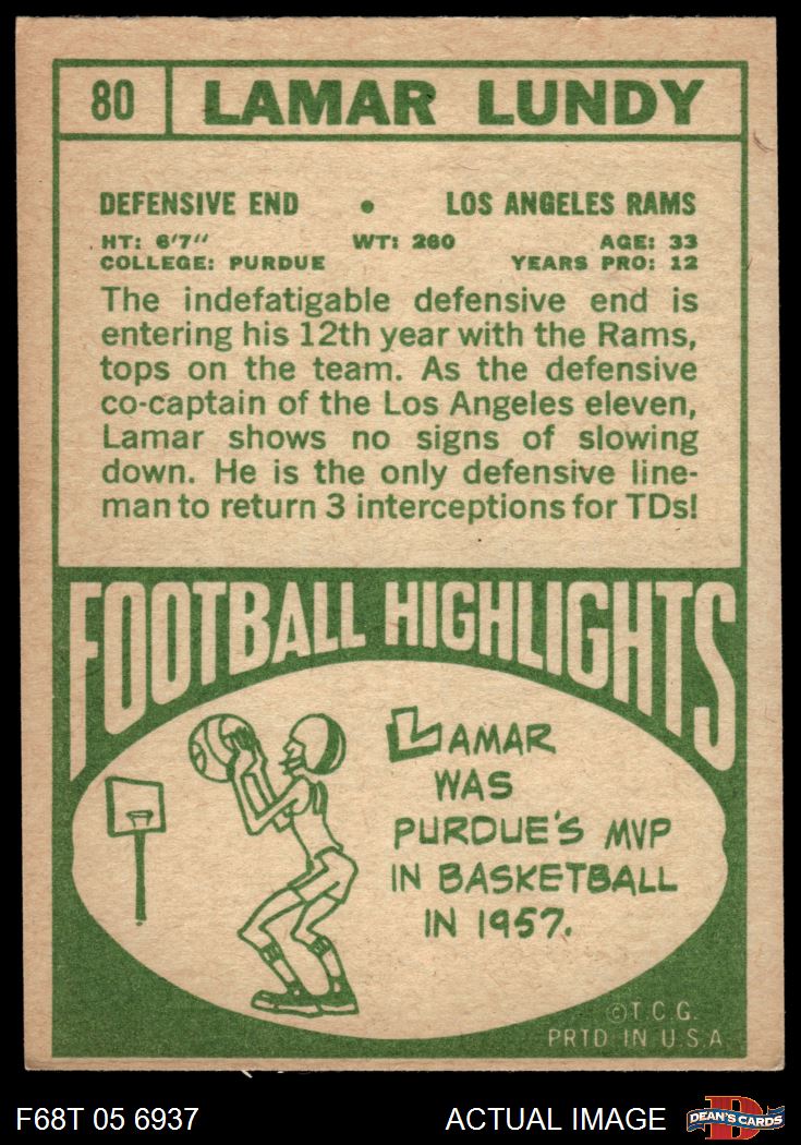 1968 Topps #80 Lamar Lundy 4 - VG/EX