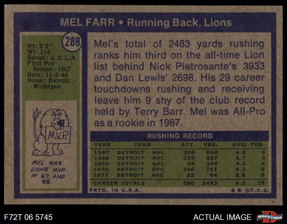 1972 Topps #288 Mel Farr