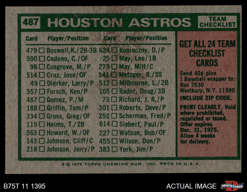 1975 Topps #487 - Preston Gomez Astros Team Checklist 3 - VG
