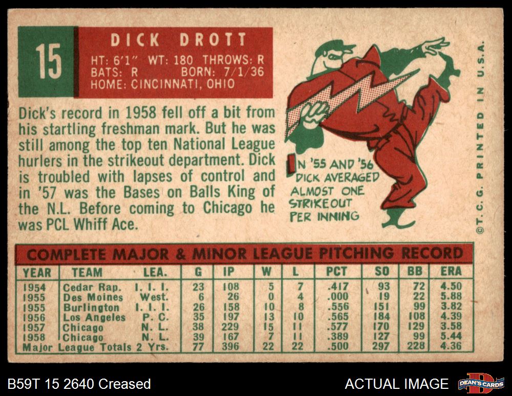 1959 Topps #15 Dick Drott 3 - VG