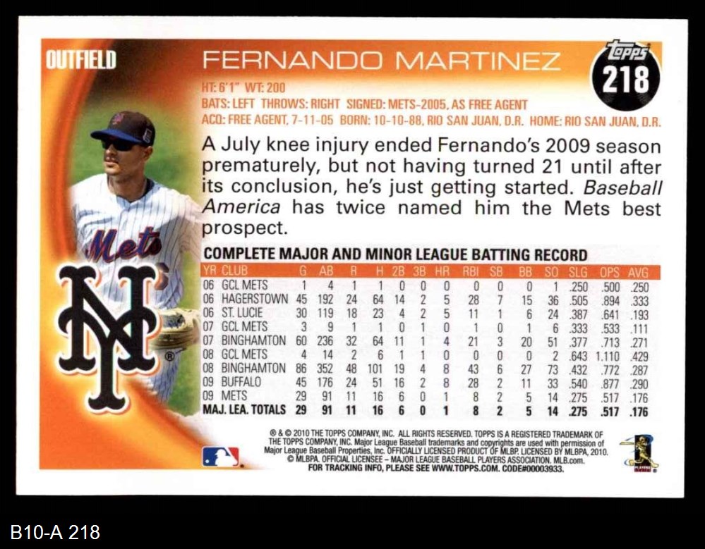 2010 Topps #218 Fernando Martinez 8 - NM/MT