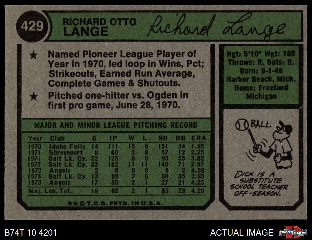 1974 Topps #429 Dick Lange 7 - NM