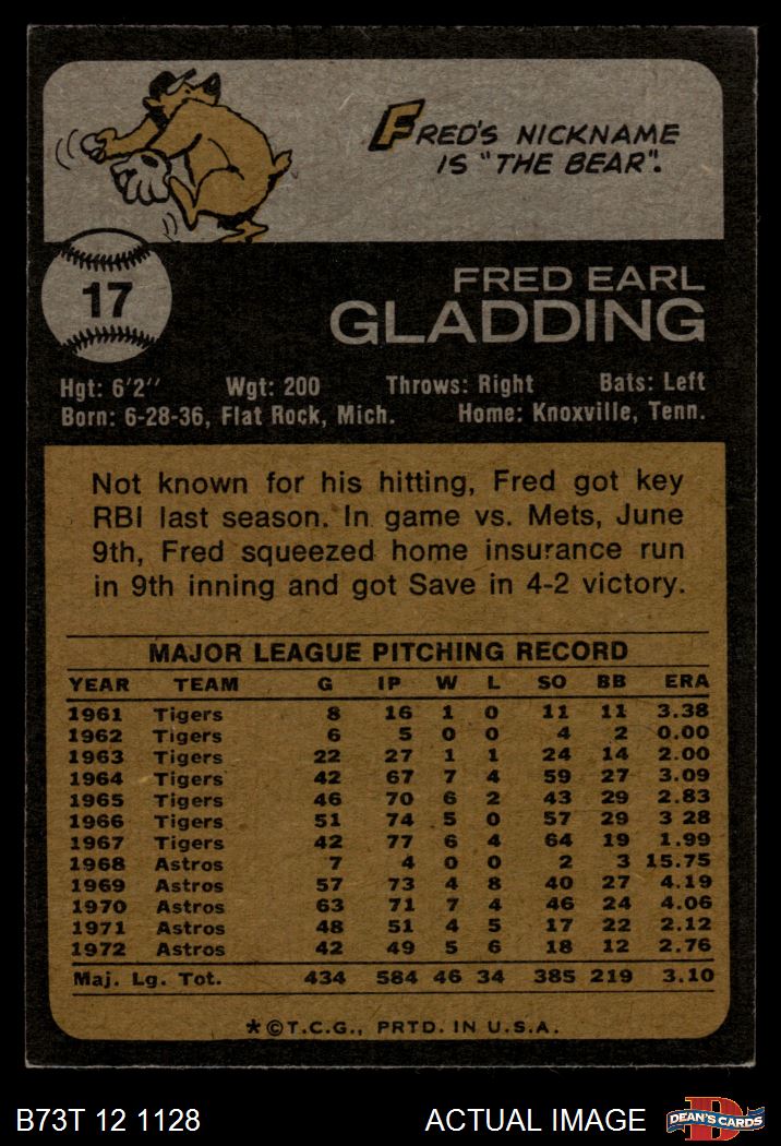 1973 Topps #17 Fred Gladding 5.5 - EX+