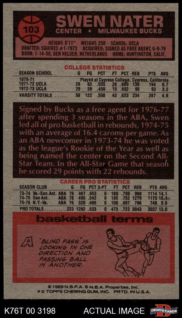 1976 Topps #103 Swen Nater 8 - NM/MT