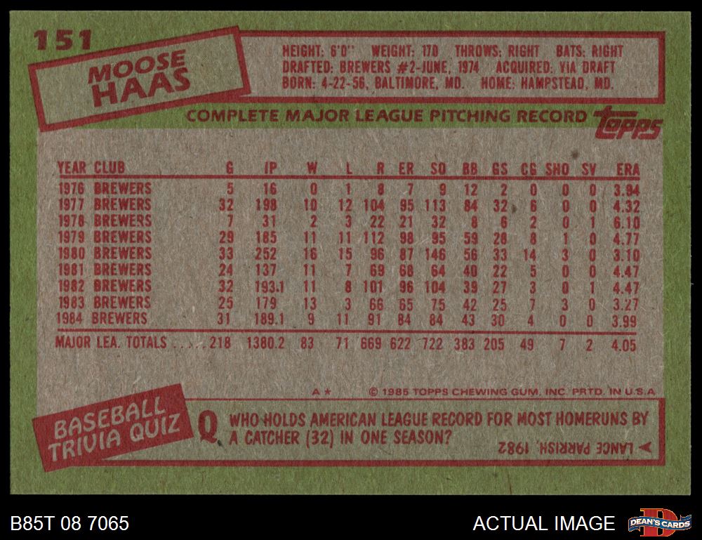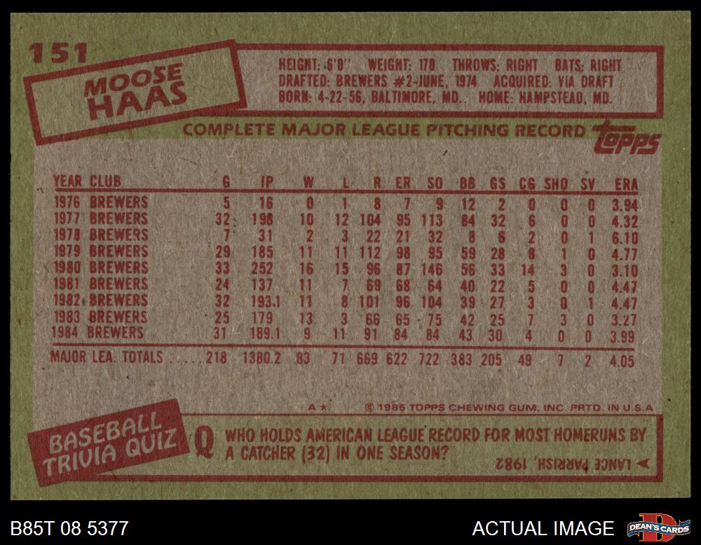 1985 Topps #151 Moose Haas