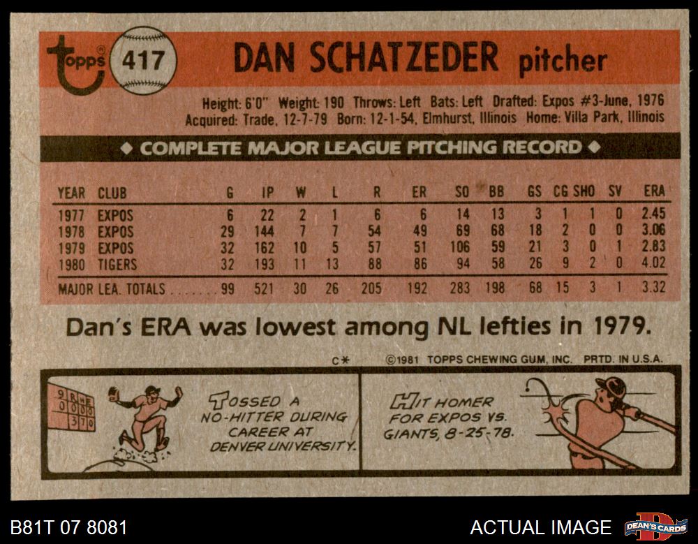 1981 Topps #417 Dan Schatzeder 6 - EX/MT