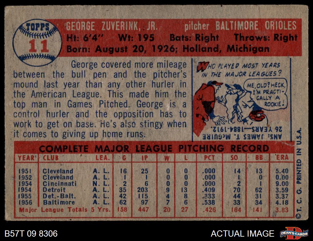 1957 Topps #11 George Zuverink 1.5 - FAIR