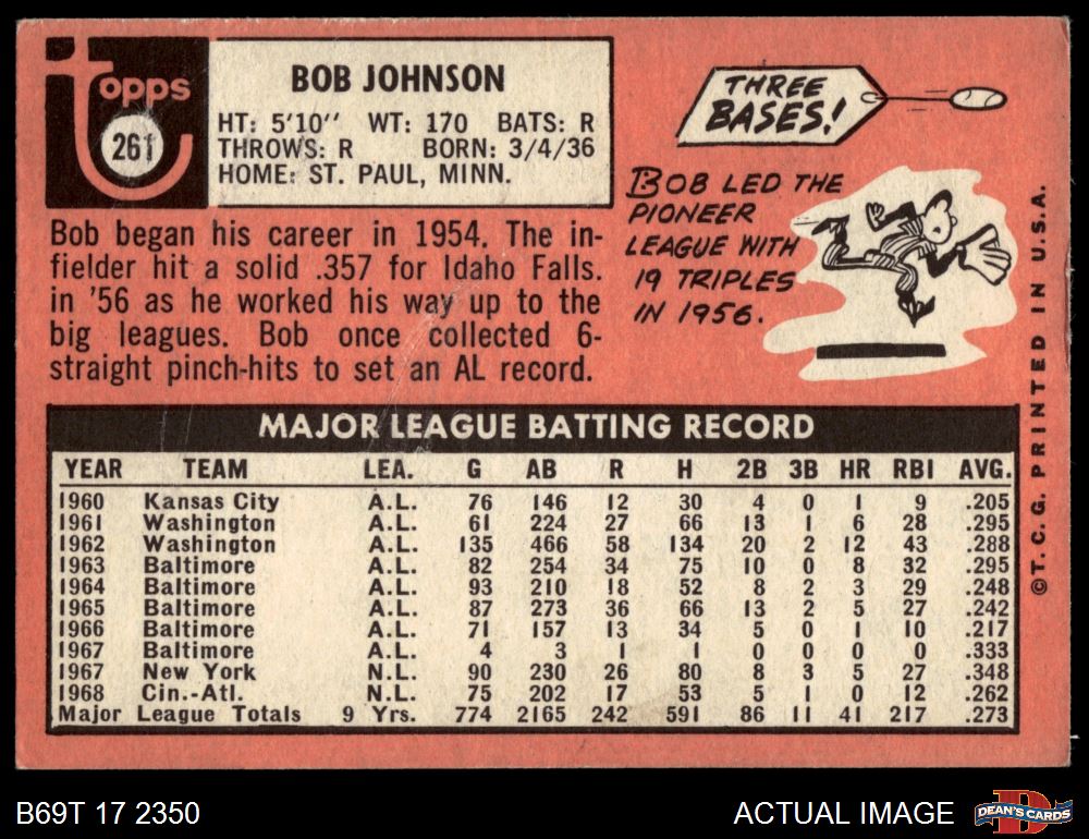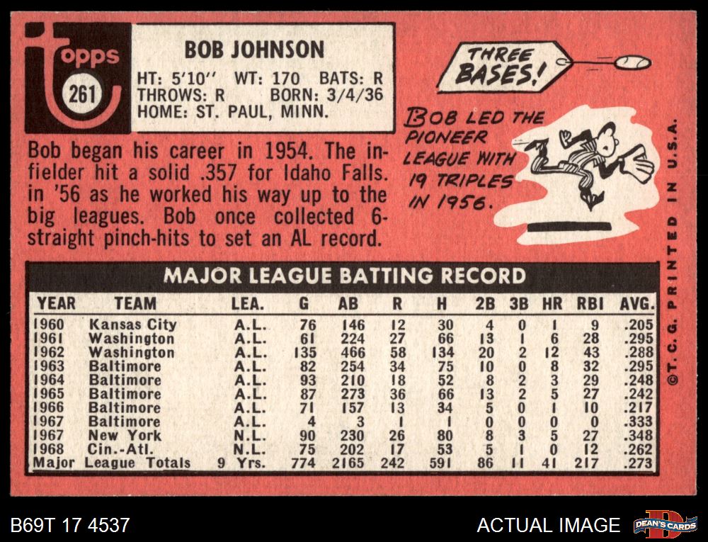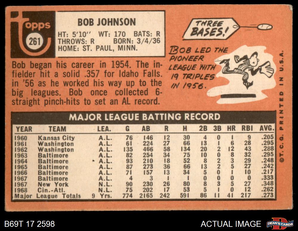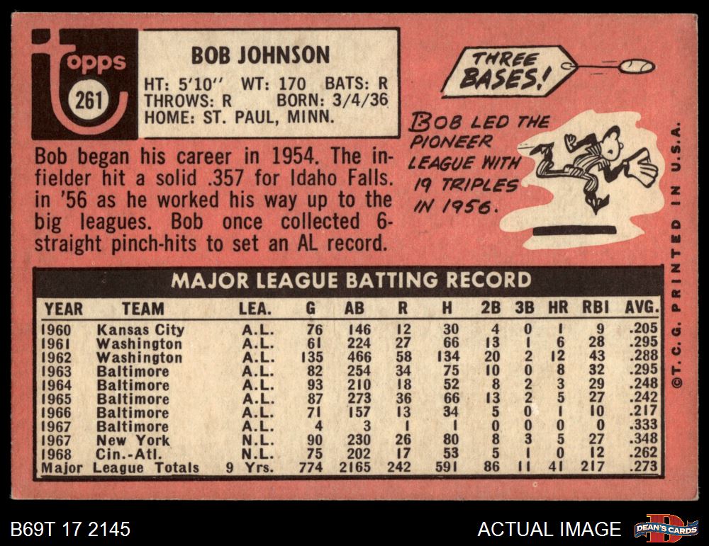 1969 Topps #261 Bob Johnson
