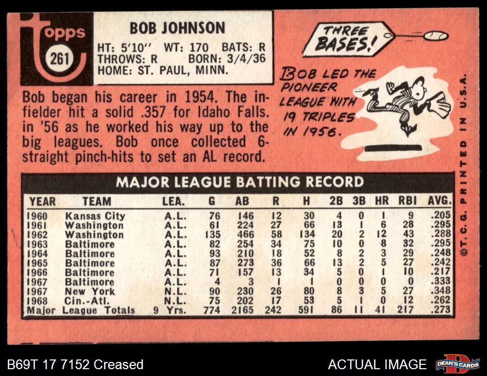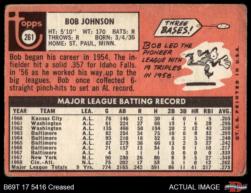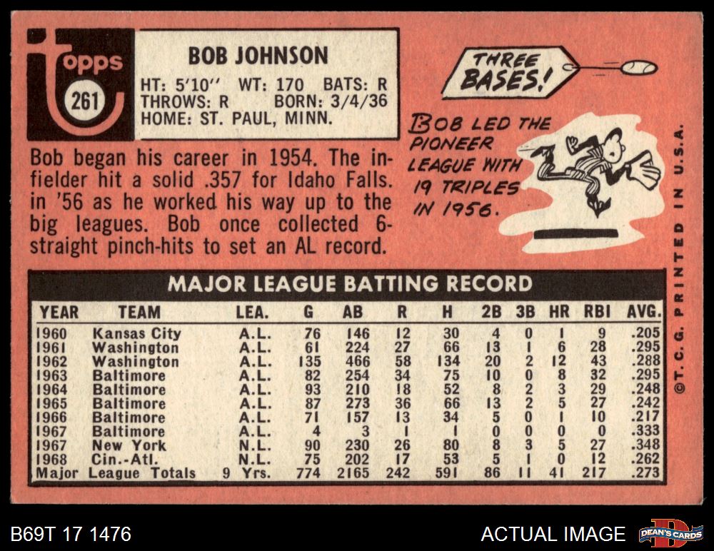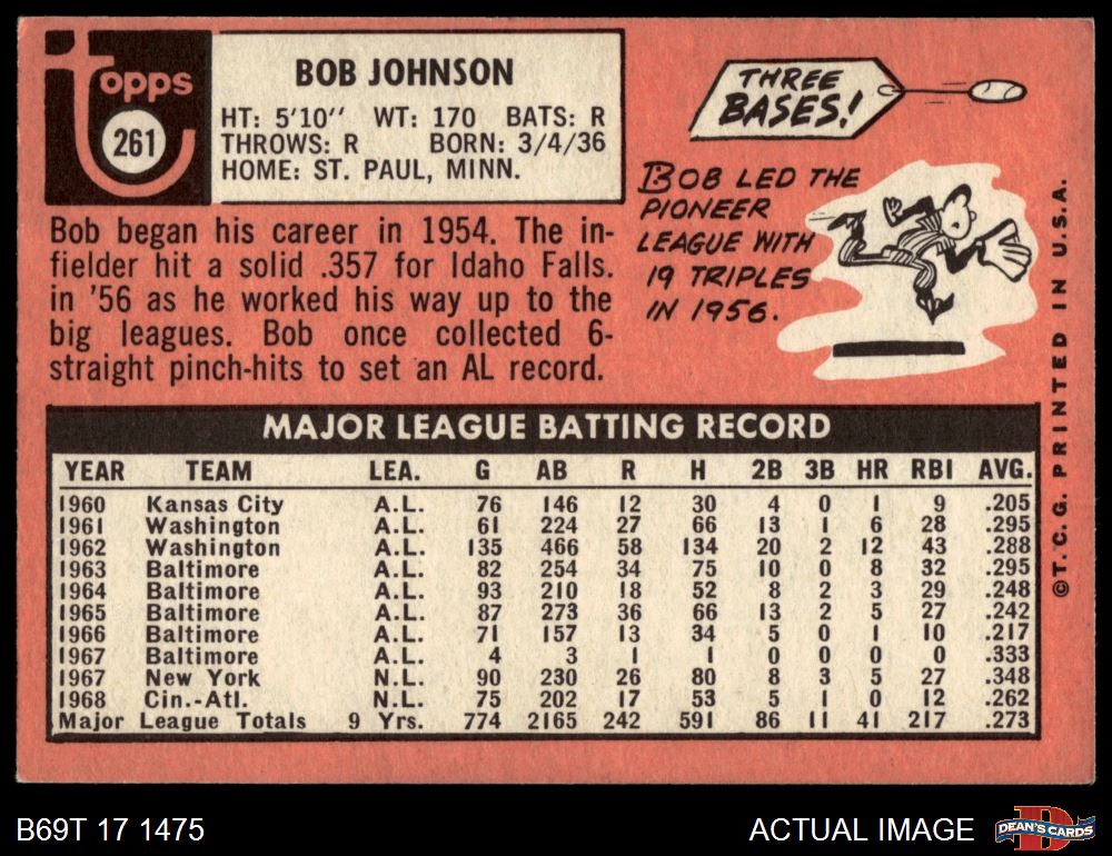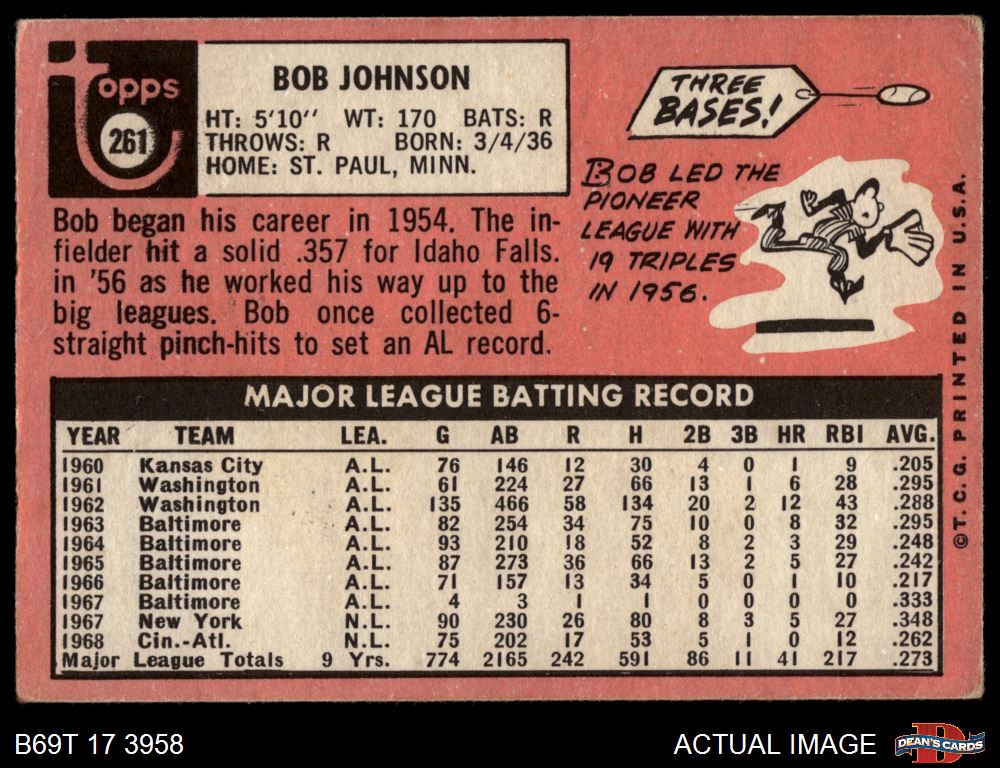 1969 Topps #261 Bob Johnson