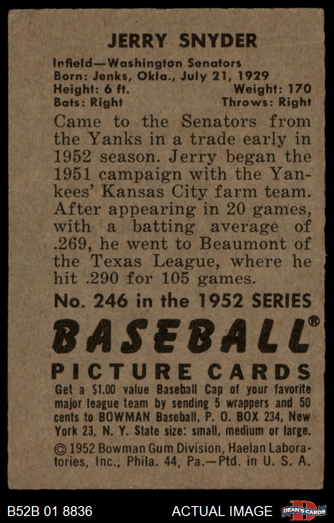 1952 Bowman #246 Jerry Snyder 4 - VG/EX