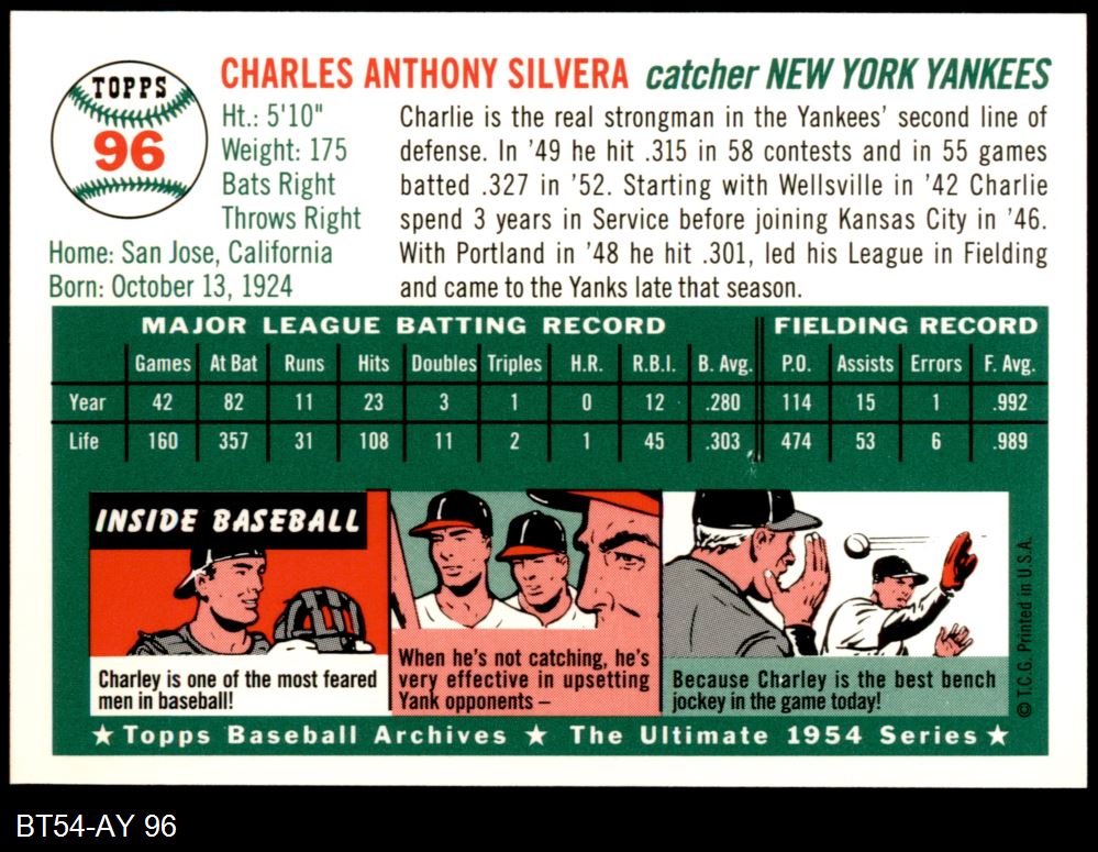 1954 Topps Archives #96 Charlie Silvera 8 - NM/MT