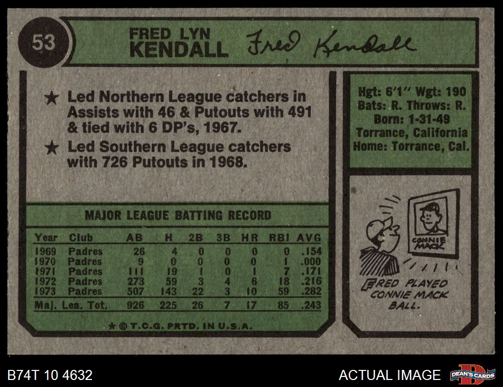 1974 Topps #53 SD Fred Kendall 2 - GOOD