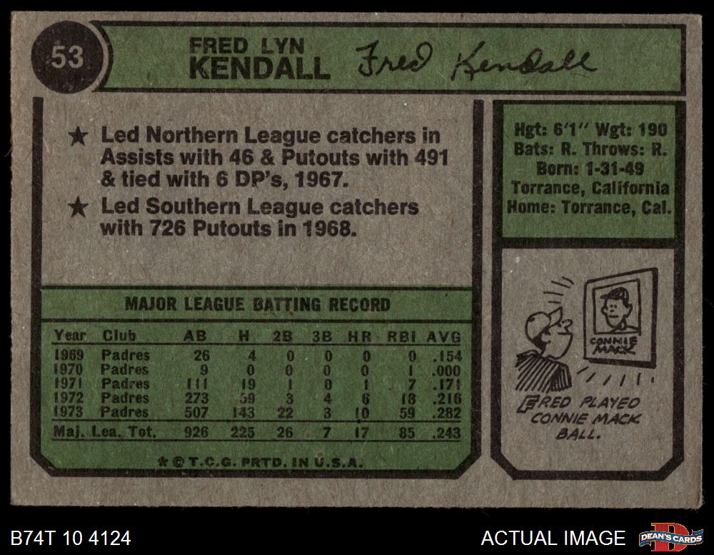1974 Topps #53 SD Fred Kendall 3 - VG