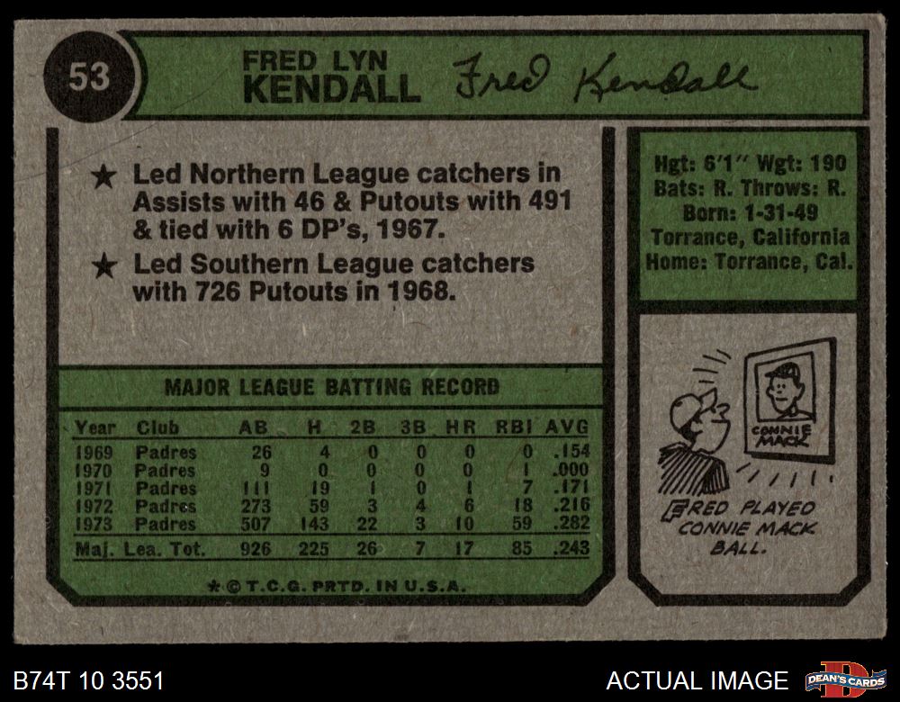 1974 Topps #53 SD Fred Kendall 4.5 - VG/EX+