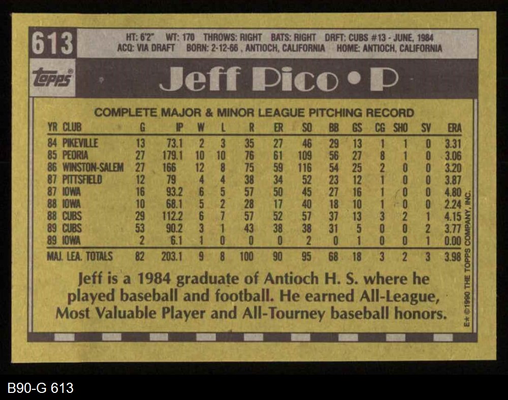 1990 Topps #613 Jeff Pico