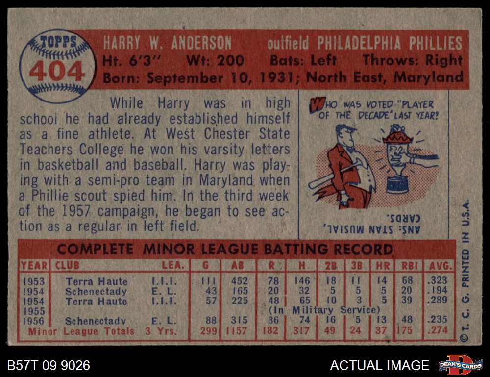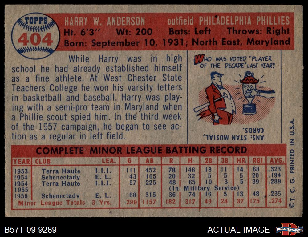 1957 Topps #404 Harry Anderson 4 - VG/EX