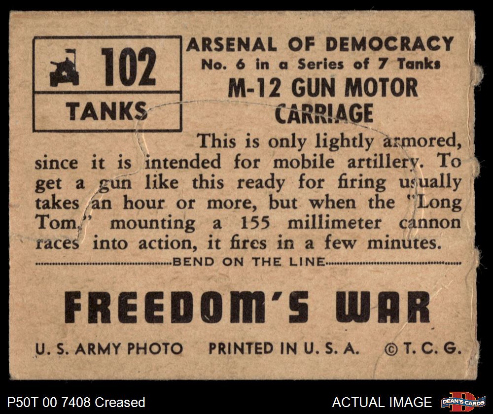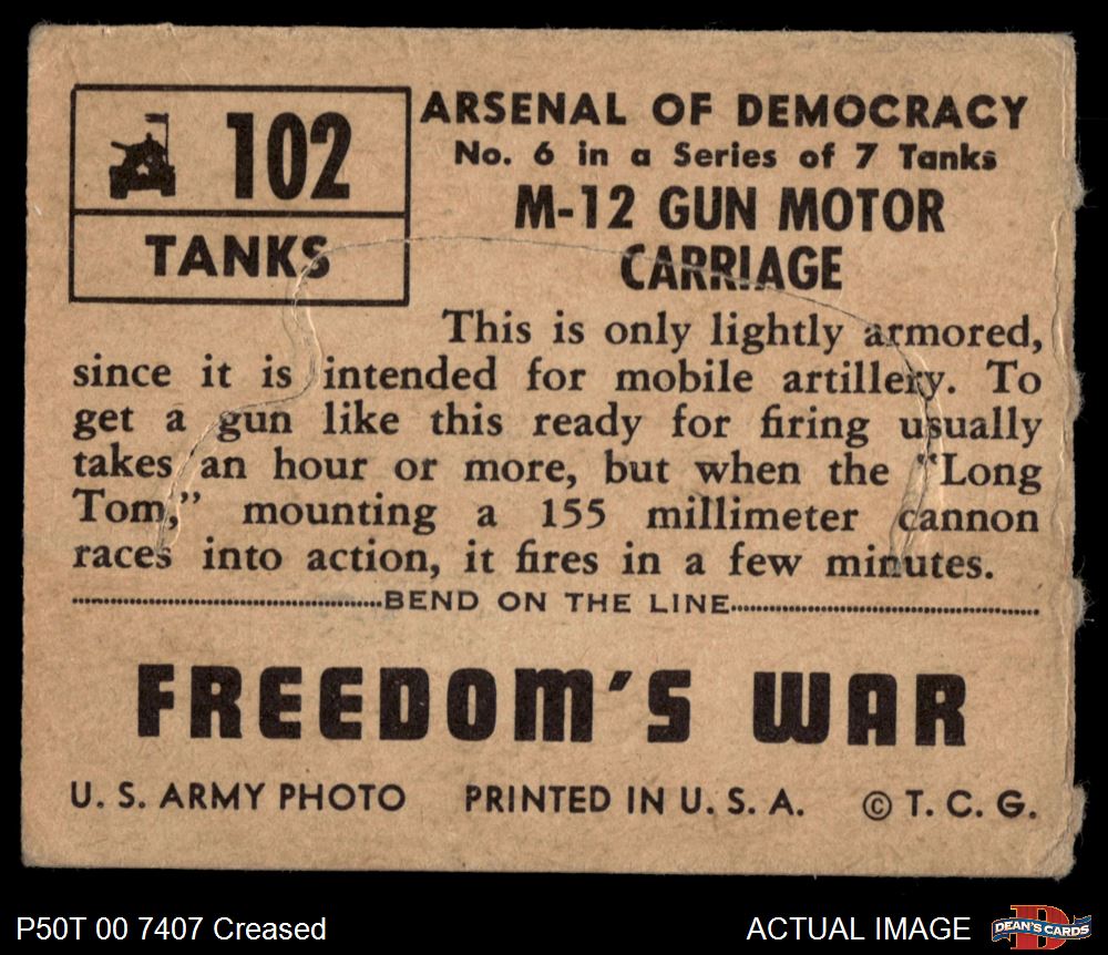 1950 Topps Freedoms War #102 M-12 Gun Motor Carriage