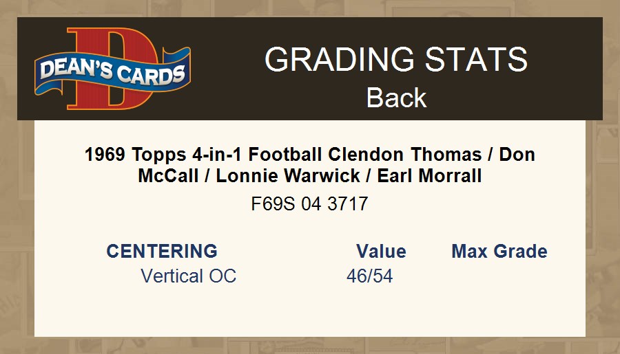 1969 Topps 4-in-1 Football Clendon Thomas / Don McCall / Lonnie Warwick / Earl Morrall 5 - EX