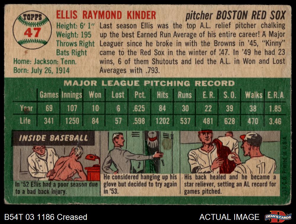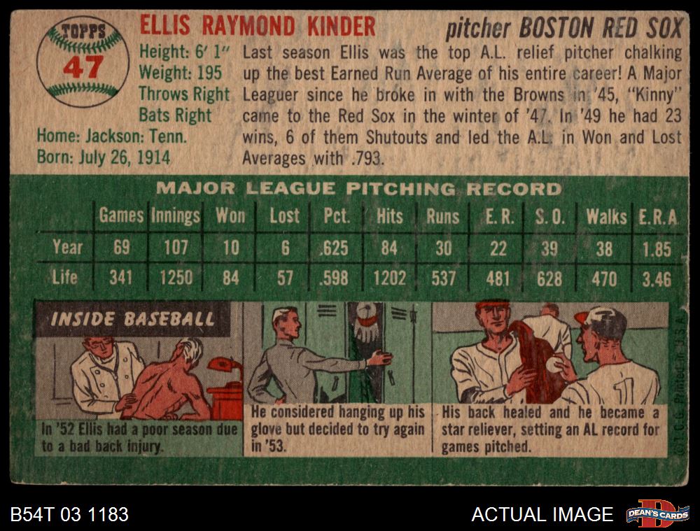 1954 Topps #47 WHT Ellis Kinder 2 - GOOD