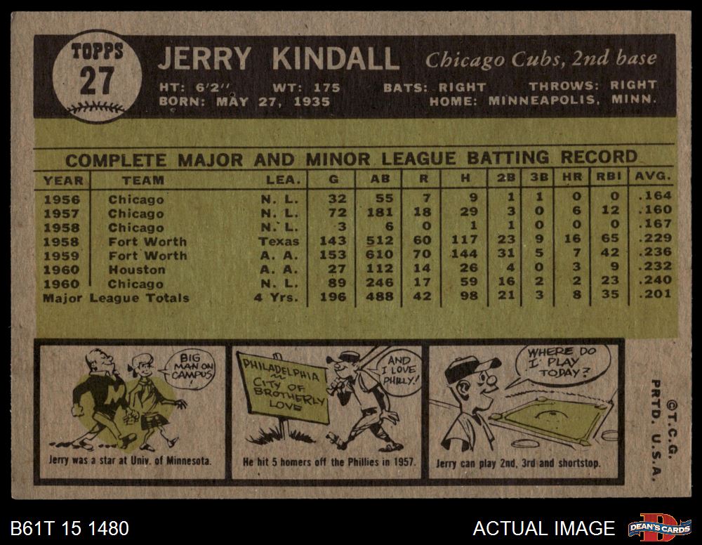 1961 Topps #27 Jerry Kindall 4 - VG/EX