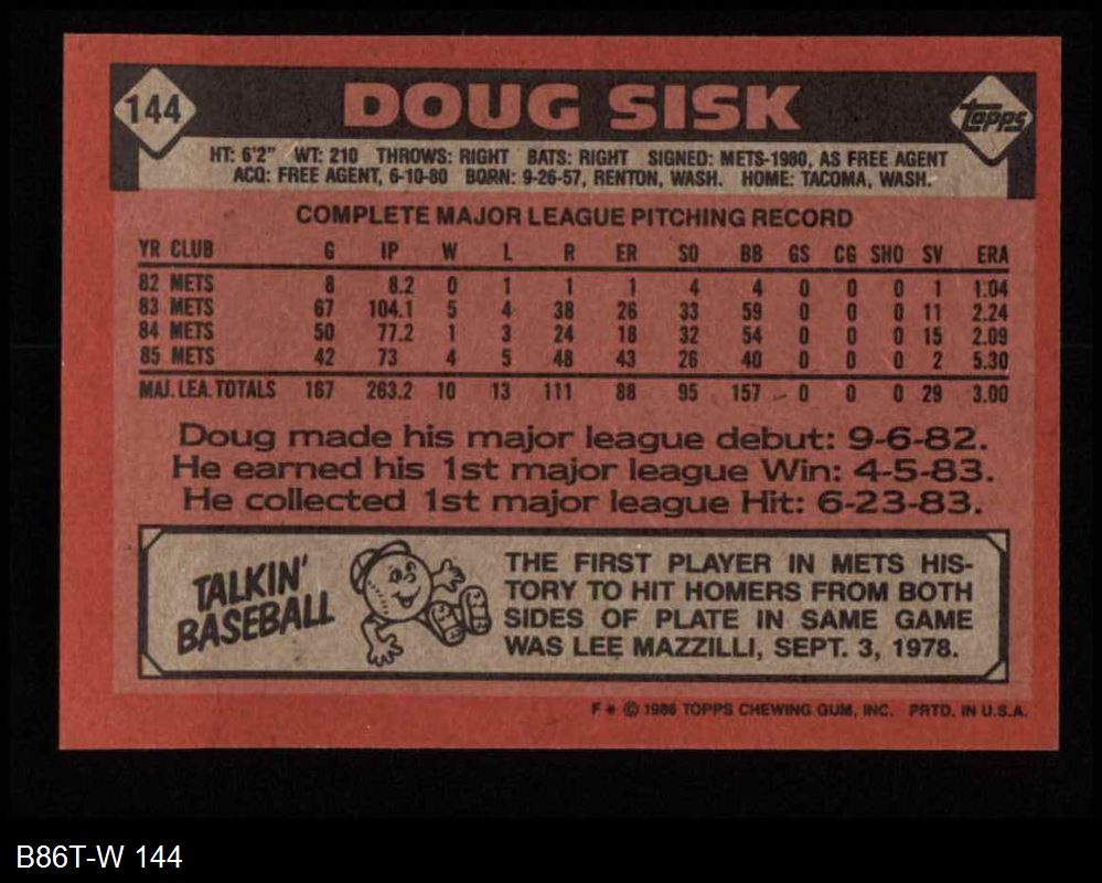 1986 Topps Baseball Cards (5,415 available)1986 Topps Mets (76 available)