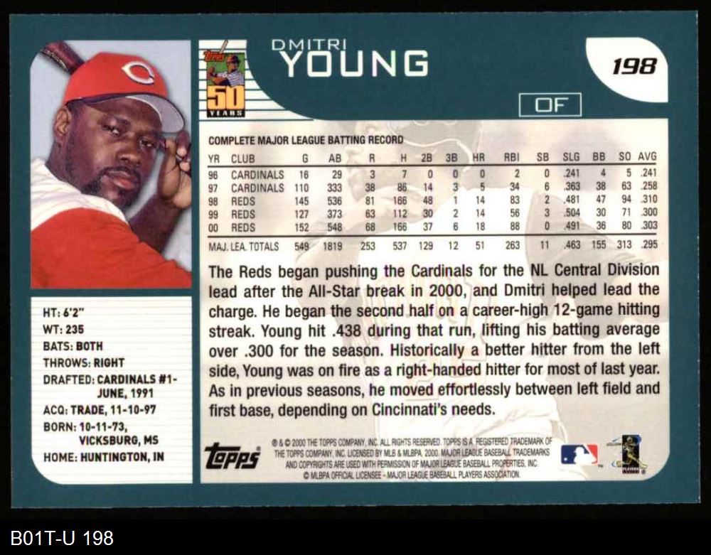 2001 Topps #198 Dmitri Young 8 - NM/MT