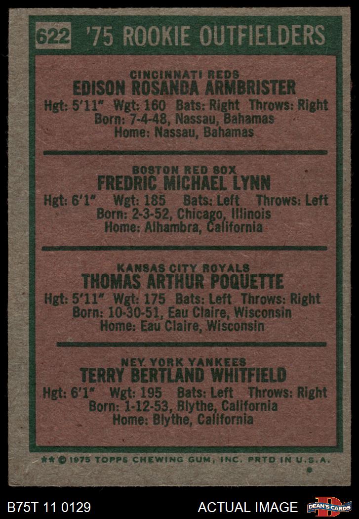 1975 Topps #622 - Fred Lynn / Ed Armbrister / Tom Poquette / Terry Whitfield Rookie Outfielders 4 - VG/EX