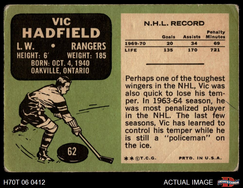 1970 Topps #62 Vic Hadfield 1 - POOR