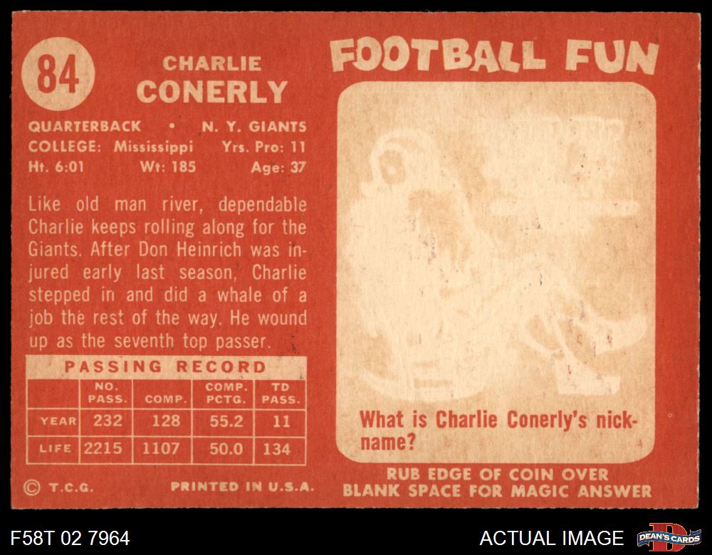 1958 Topps #84 Charley Conerly 5 - EX